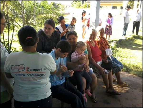 A Secretária Municipal de Saúde, Arlene de S. Oliveira, comunica que a unidade de Estratégia de Saúde da Família (ESFs) de São José do Povo vem realizando a vacina contra a influenza. A campanha de vacinação teve início no último dia 30 de abril, quando o município havia recebido 440 doses, sendo 49% do total das vacinas. Uma 2ª remessa de vacinas – 130 doses, 15% do total – chegou ao município na segunda-feira (09/05), onde já acabaram. Segundo Cibelly Rodrigues de Souza Carvalho, enfermeira da Vigilância em Saúde do Escritório Regional de Rondonópolis/MT, que estará liberando o restante das vacinas (36%) para a campanha da influenza na sexta-feira (13/05).Os grupos prioritários que devem procurar as unidades de saúde para a imunização são os idosos com mais de 60 anos, gestantes, puérperas, crianças de seis meses até menores de cinco anos e profissionais de saúde. A unidade de saúde do município funciona de segunda a sexta-feira, das 07h às 11h e das 13h às 17h. São José do Povo já tem computado nos registros do Ministério da Saúde 64,16% de pessoas dos grupos prioritários vacinadas. Esse número é da última parcial de quinta-feira (12/05). As informações são da responsável pelo Setor de Imunização Municipal, Enfermeira do PSF Thais dos Santos Santana.