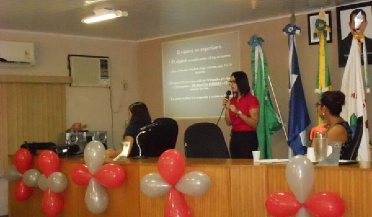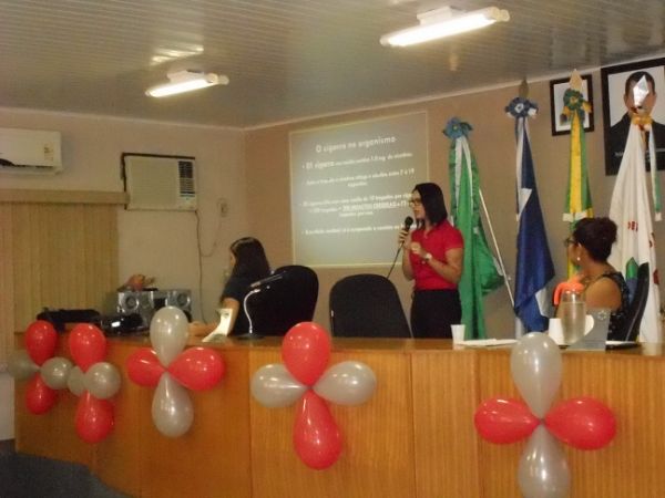 No último dia 31 de maio, a saúde de São José do Povo, promoveu mais uma ação de prevenção ao tabagismo. A coordenação do Programa de Controle do Tabaco do municipio realizou o I Seminário de Prevenção ao Tabagismo de São José do Povo, que ocorreu no Auditório da Câmara Municipal dos Vereadores. De acordo com a Enfermeira Coordenadora Anna Claudia, "Esse evento tem objetivo principal de informar a população principalmente as crianças e adolescentes de 10 a 19 anos, que de acordo com estudos cientificos é nessa faixa etária o maior índice de iniciar a vida de fumante. Então, o nosso evento vem como ação de prevenção para que nas novas gerações o número de fumantes sejam menor que os números atuais- O evento contou com palestras da psicóloga Residente em Saúde da Famália de Rondonópolis Daiane Reimann, a Enfermeira Residente em Saúde da Famália de Rondonópolis Vanessa Cardoso e a Odontologa do Programa de Saúde da Famália do município, onde discutiram sobre a temática levantado assuntos como: os prejuízos a saúde ao fumar, a dependência psicológica e as doenças bucais ocasionadas pelo tabaco. O evento contou ainda, com a apresentação cultural da Cia de Dança Arte Pura e com a presença de alunos da Escola Estadual Ludovico, pacientes que estão em tratamento e toda a equipe da Secretaria de Saúde do município. Clique aqui para ver mais fotos