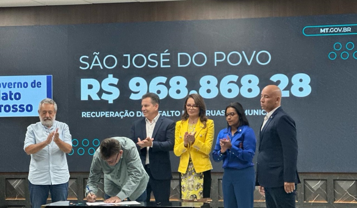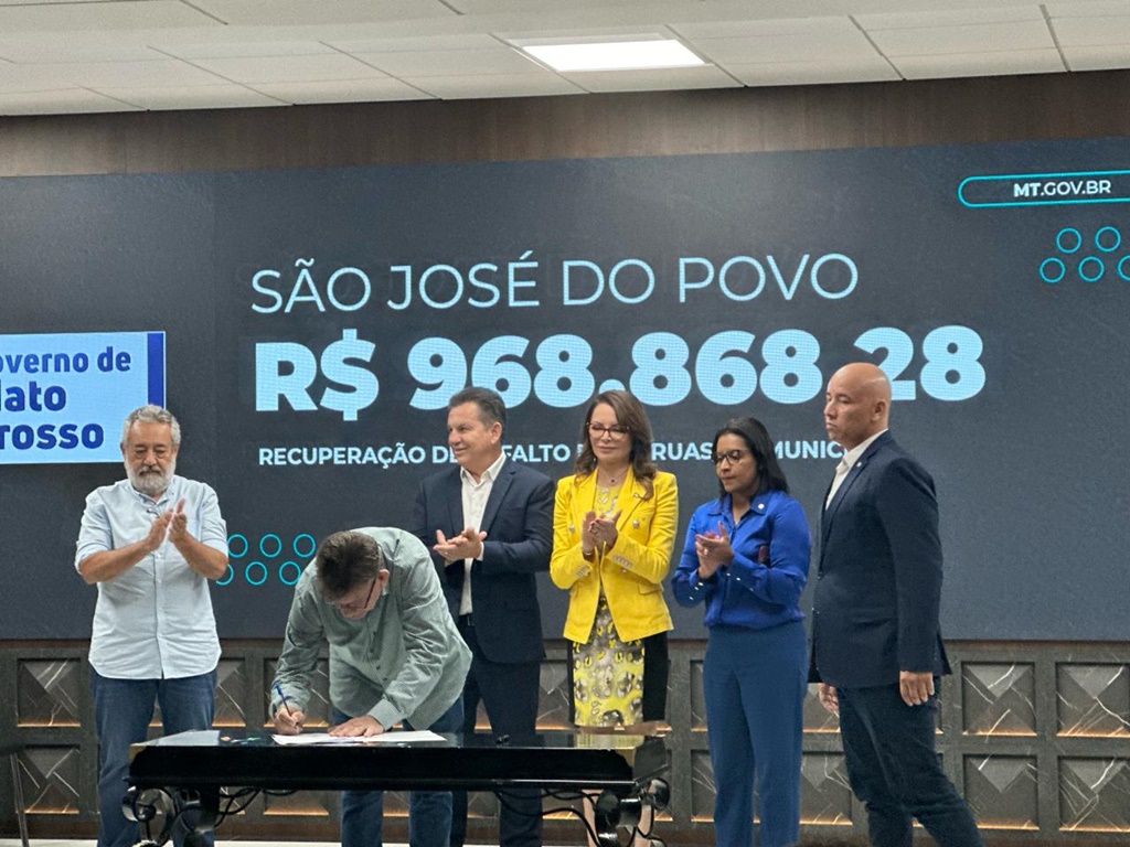 O Prefeito de São José do Povo, Ivanildo Vilela, assinou ontem (04) no Palácio Paiáguas o convênio para obra de microrevestimento nas ruas já asfaltadas do município. Parceria da Prefeitura Municipal com o Governo de Mato Grosso por meio da Secretaria de Estado de Infraestrutura e Logística do Estado de Mato Grosso – SINFRA, que vai possibilitar um investimento de cerca de R$ 968.868,28 para a obra.