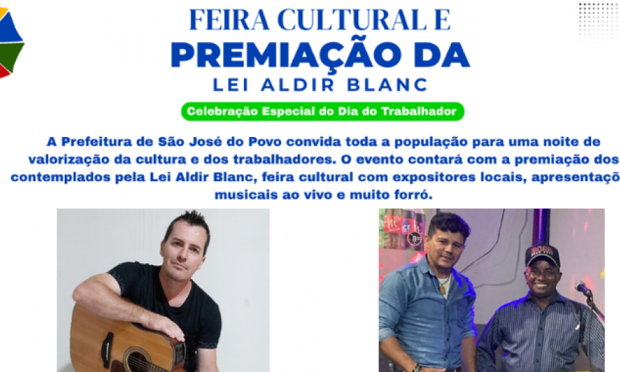 Prefeitura de São José do Povo anuncia abertura de edital para premiação de agentes culturais via Lei Aldir Blanc
